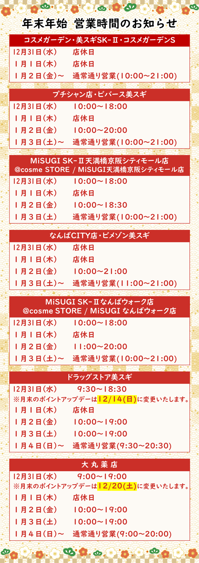 年末年始営業時間のお知らせ